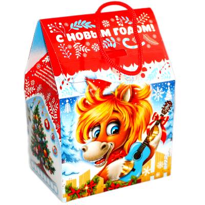 Детские новогодние подарки в картонной упаковке с Лошадью - символом 2026 года